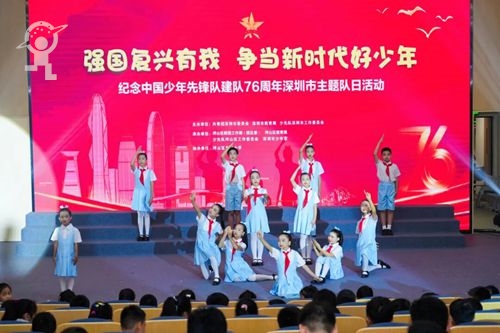 10月11日上午,由共青团深圳市委员会、深圳市教育局、少先队深圳市工作委员会联合主办,坪山区群团工作部(团区委)、坪山区教育局、少先队坪山区工作委员会及深圳市少年宫联合承办,深圳市坪山区东纵小学协办的“强国复兴有我 争当新时代好少年”纪念中国少年先锋队建队76周年深圳市主题队日活动在坪山区举行。团深圳市委、市教育局、市少工委、坪山区有关负责同志,以及坪山区学校少工委主任代表、各学校大队辅导员、少先队员代表等300余人参加了活动。活动旨在通过庄严的入队仪式和丰富的红色节目,纪念中国少年先锋队建队76周年,深化少年儿童爱国主义教育,引导广大少先队员传承红色基因、树立远大理想,争当新时代好少年。